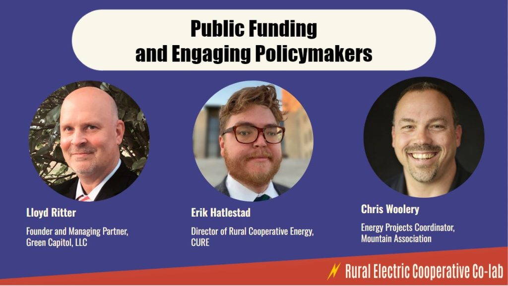 This seventh session will focus on how to acquire and retain public funding for Rural Electric Cooperatives and how to engage with policymakers to do so, drawing from the years of experience and success that presenters have in this area.